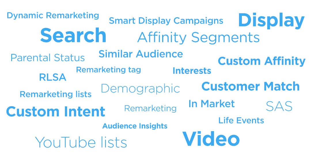 Here at Quarry, our SEM strategy is much more than “run an ad on Google.” There are multiple platforms within AdWords with different ways to reach audiences, as you can see below.